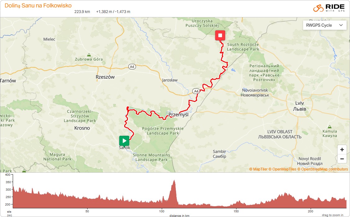 Pomimo kilku podjazdów w okolicach Dynowa i Przemyśla, gdzie przydadzą się sprawne hamulce i dobra kondycja większość prawie 250 km trasy - w dolinie Sanu, przy granicy z Ukrainą i na Roztoczu - została poprowadzona płaskimi drogami.