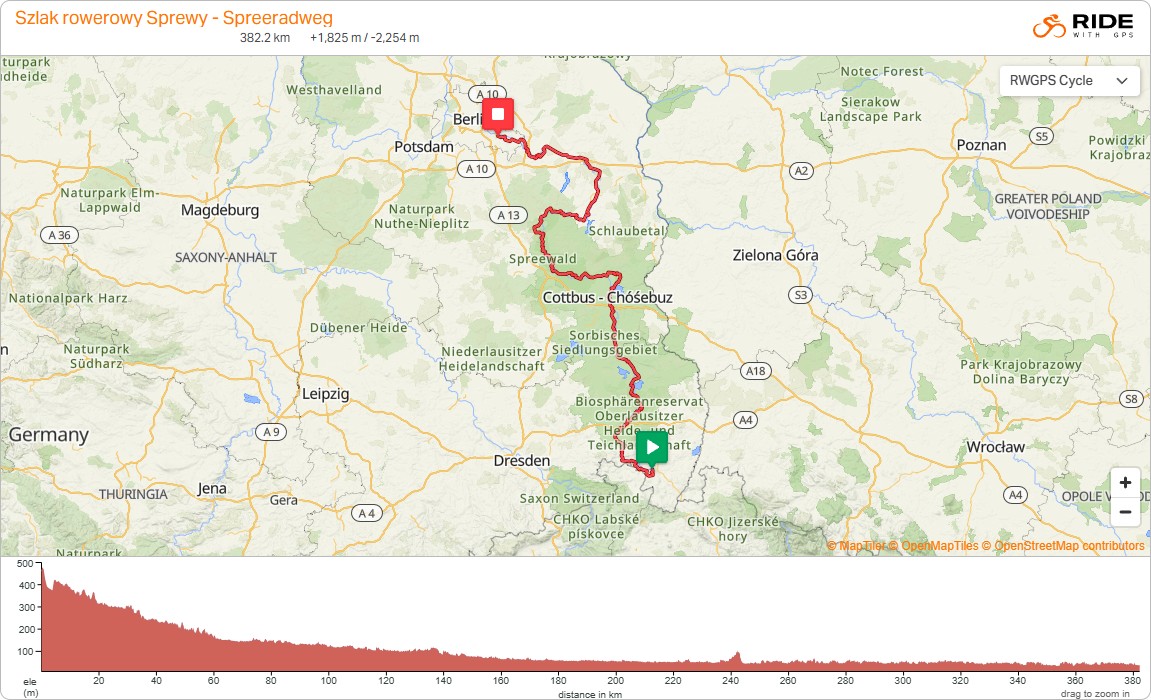 Spreeradweg rozpoczyna się u źródeł Sprewy w pobliżu miasteczka Ebersbach-Neugersdorf. Stąd rzeka meandruje przez Górne Łużyce mijając Bautzen (Budziszyn), miasto z imponującą starówką i malowniczym zespołem zamkowym. Z Budziszyna Sprewa biegnie przez Rezerwat Biosfery Górnołużyckiego Krajobrazu Wrzosowisk i Stawów, który jest rajem dla miłośników przyrody i obserwatorów ptaków i dociera do Sprembergu i Łużyckiego Zagłębia Węglowego, gdzie po byłych kopalniach odkrywkowych węgla brunatnego powstało malownicze pojezierze. Dalej Cottbus (Chociebuż) z historycznym centrum i parkiem Branitz księcia Pücklera i wjeżdżamy w lasy Spreewald, rezerwat biosfery Unesco, gdzie przejedziemy przez unikatowy krajobraz niezliczonych kanałów wodnych z urokliwymi, drewnianymi mostkami i kolorowymi łodziami oraz rozległych lasów sosnowych i łęgowych przeplatanych spokojnymi jeziorami, a także spróbujemy pysznych, legendarnych kiszonek szprewaldzkich. Końcówka szlaku rowerowego Sprewy prowadzi ze średniowiecznego miasta Beeskow przez rozległe lasy i jeziora Brandenburgii by ostatecznie dotrzeć do Berlina. Tutaj Sprewa wije się przez tętniącą życiem stolicę, mijając takie zabytki jak dzielnica rządowa, Katedra Berlińska i Wyspa Muzeów i tam wpływa do Haweli.